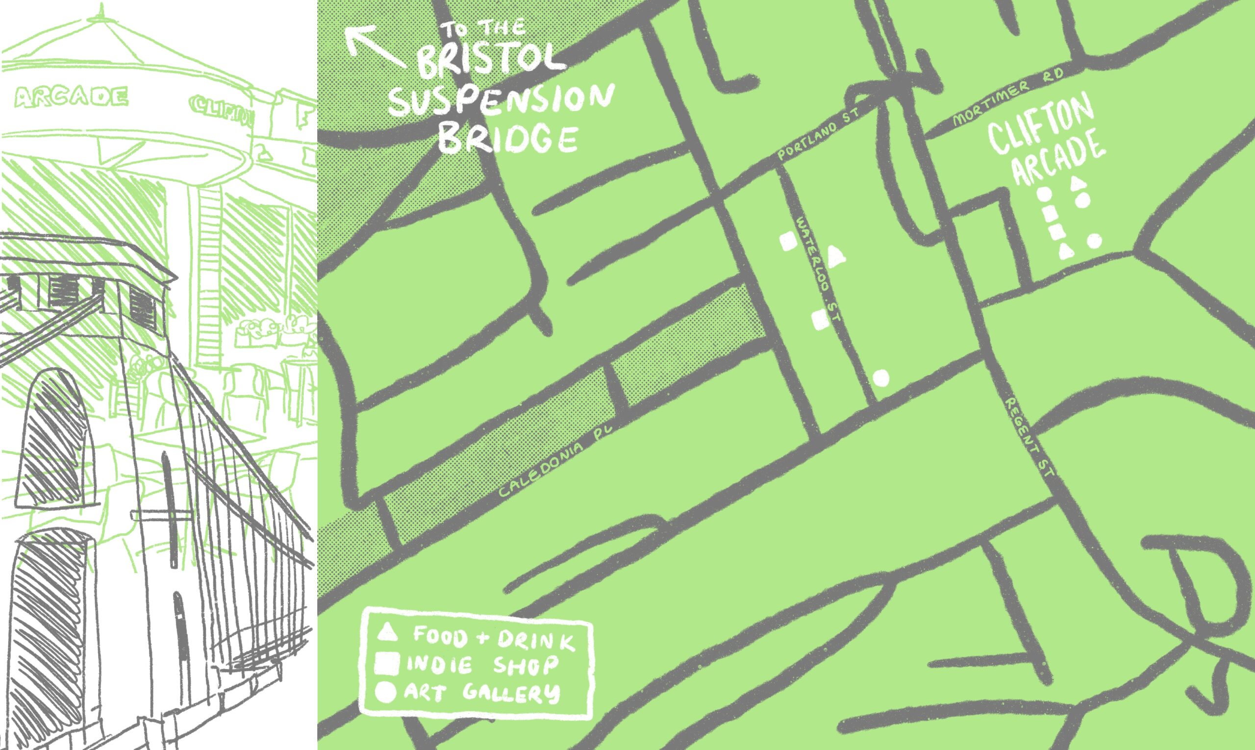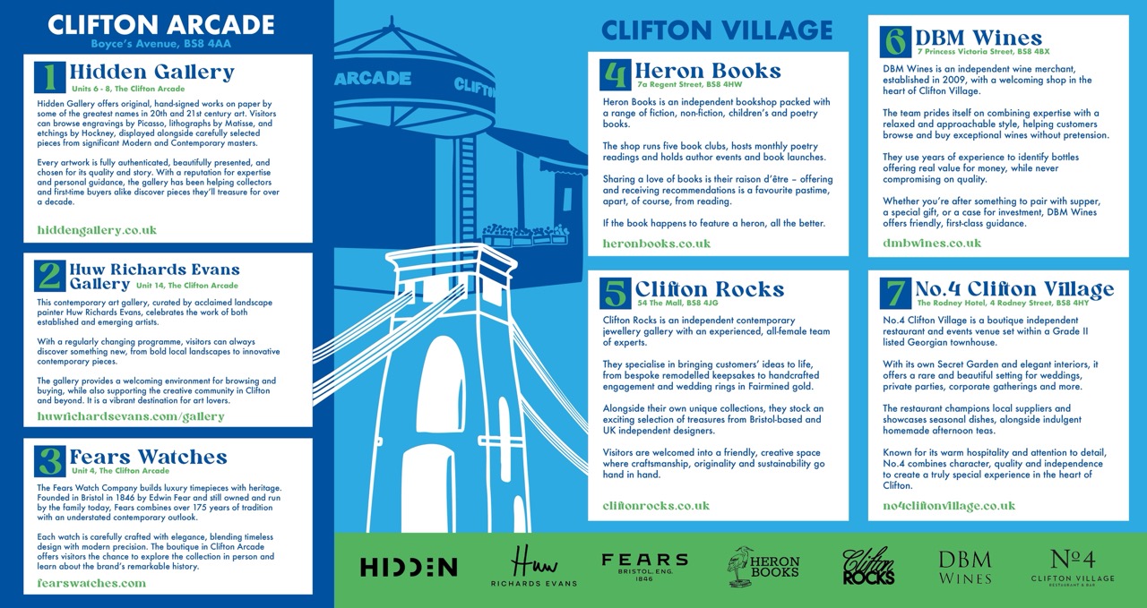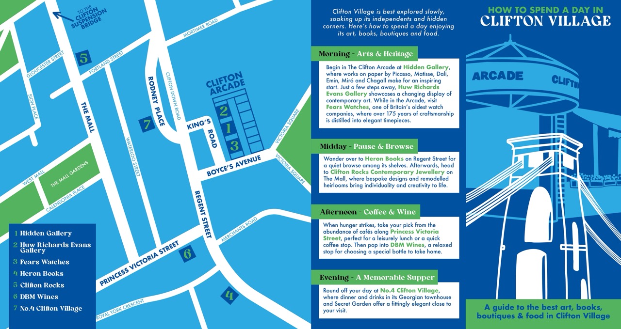 To create an illustrated, curated guide to Clifton Village showcasing its top independent businesses, shops and eateries to encourage local exploration.