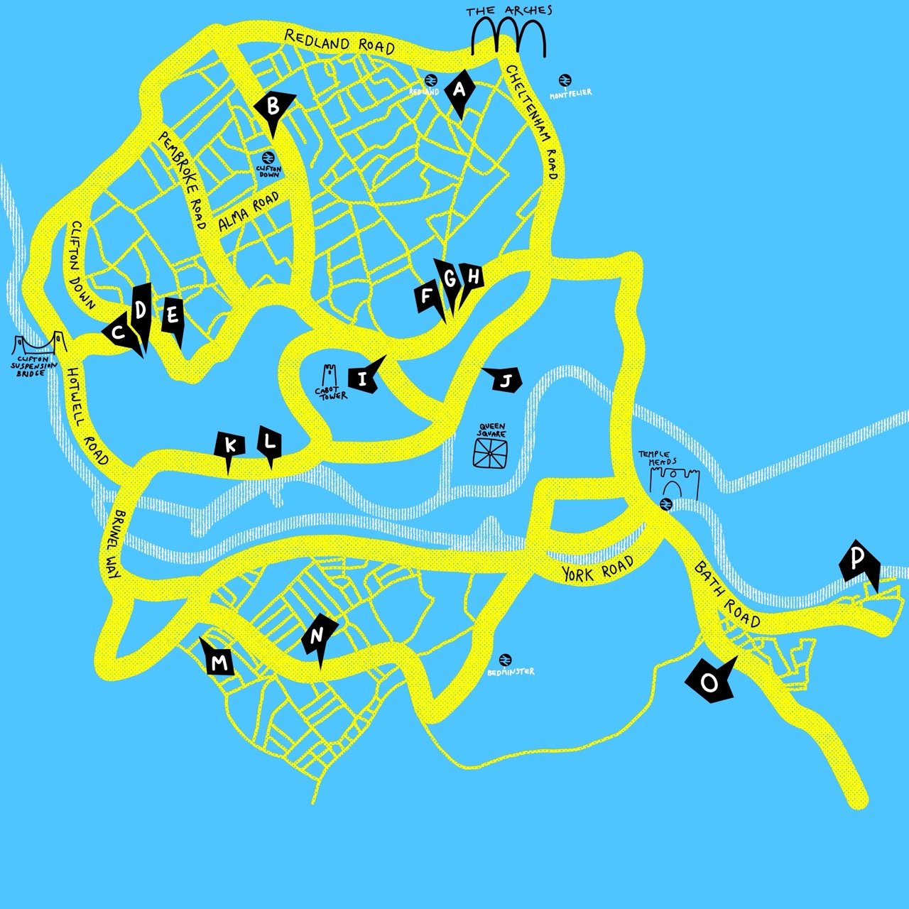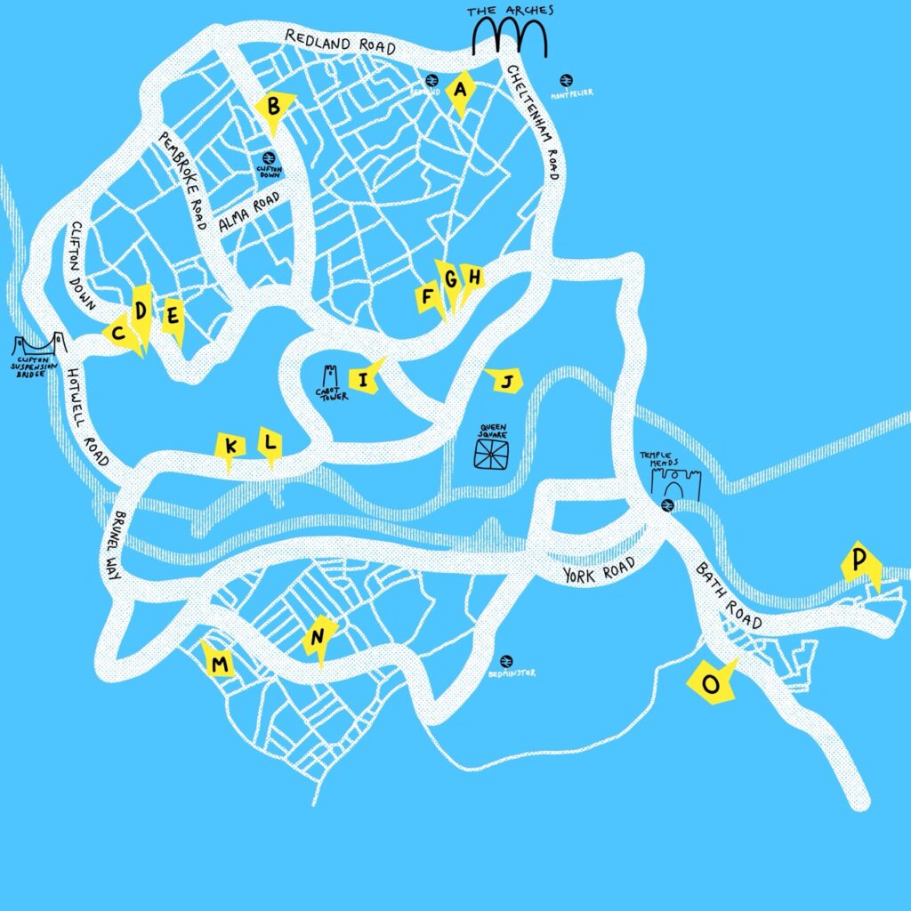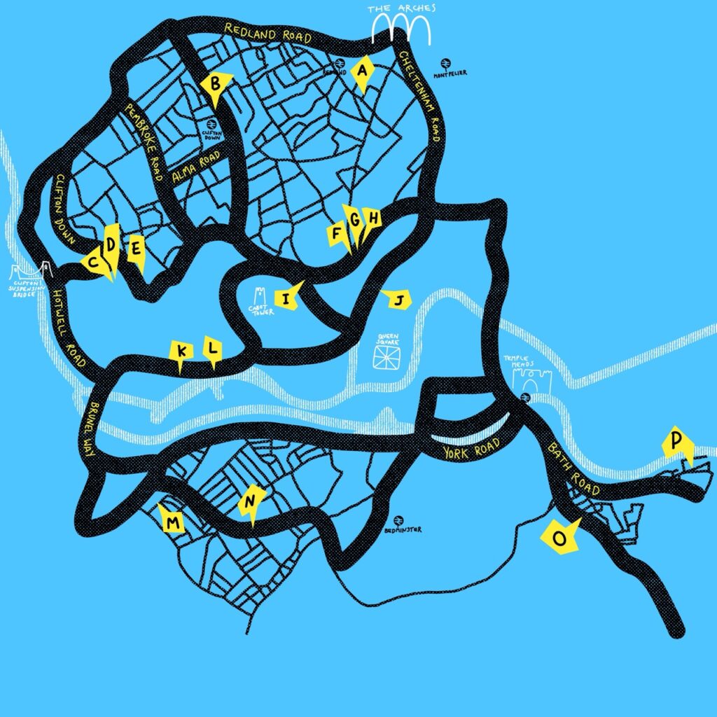 I work closely with the event founder to create logos, design branding, illustrate a stylised map of Bristol and layout leaflets + posters for print.