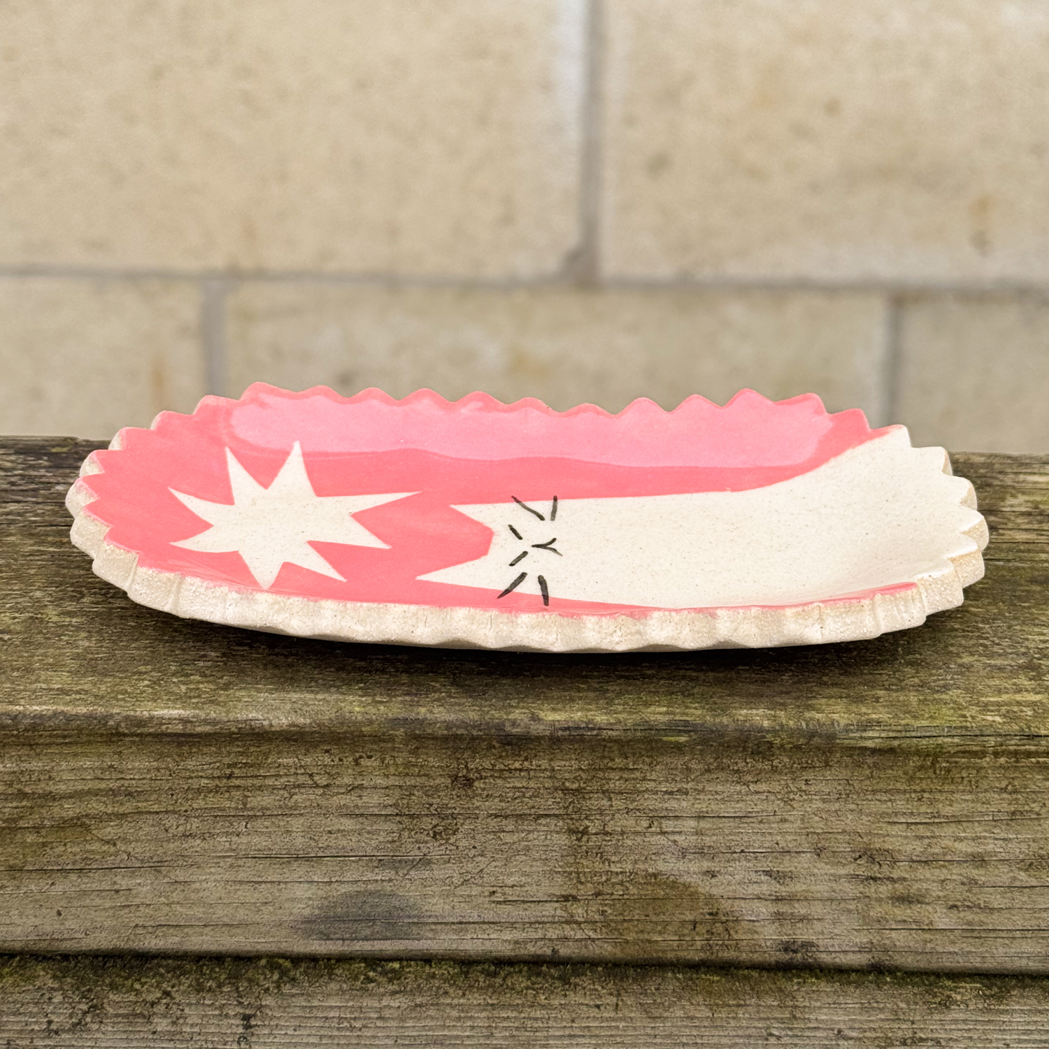 Handbuilt + hand painted ceramic trinket/serving dish ⭐️